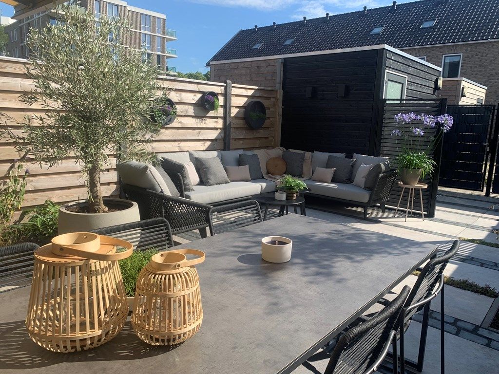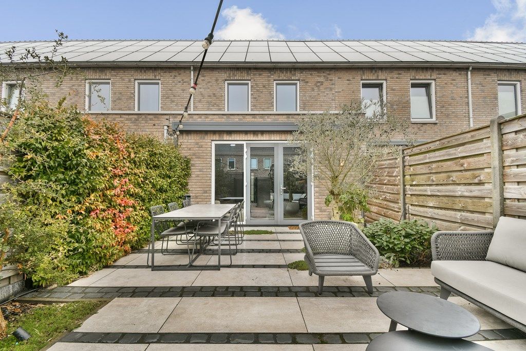 Via de openslaande deuren kom je in de zonnige achtertuin gelegen op het zuidwesten. Het terras ligt direct aan de achterzijde van de woning: een ideale plek om al vroeg in het voorjaar van de zon te genieten en ’s avonds nog lang buiten te zitten. Is het een warme dag? Met één druk op de knop zorgt het zonnescherm voor een fijne schaduwplek. De tuin is sfeervol ingericht met vaste beplanting en instelbare verlichting, waardoor je ook ’s avonds een heerlijke sfeer creëert. Achter in de tuin staat een houten schuur met elektra, perfect voor fietsen, tuingereedschap en extra opslag.