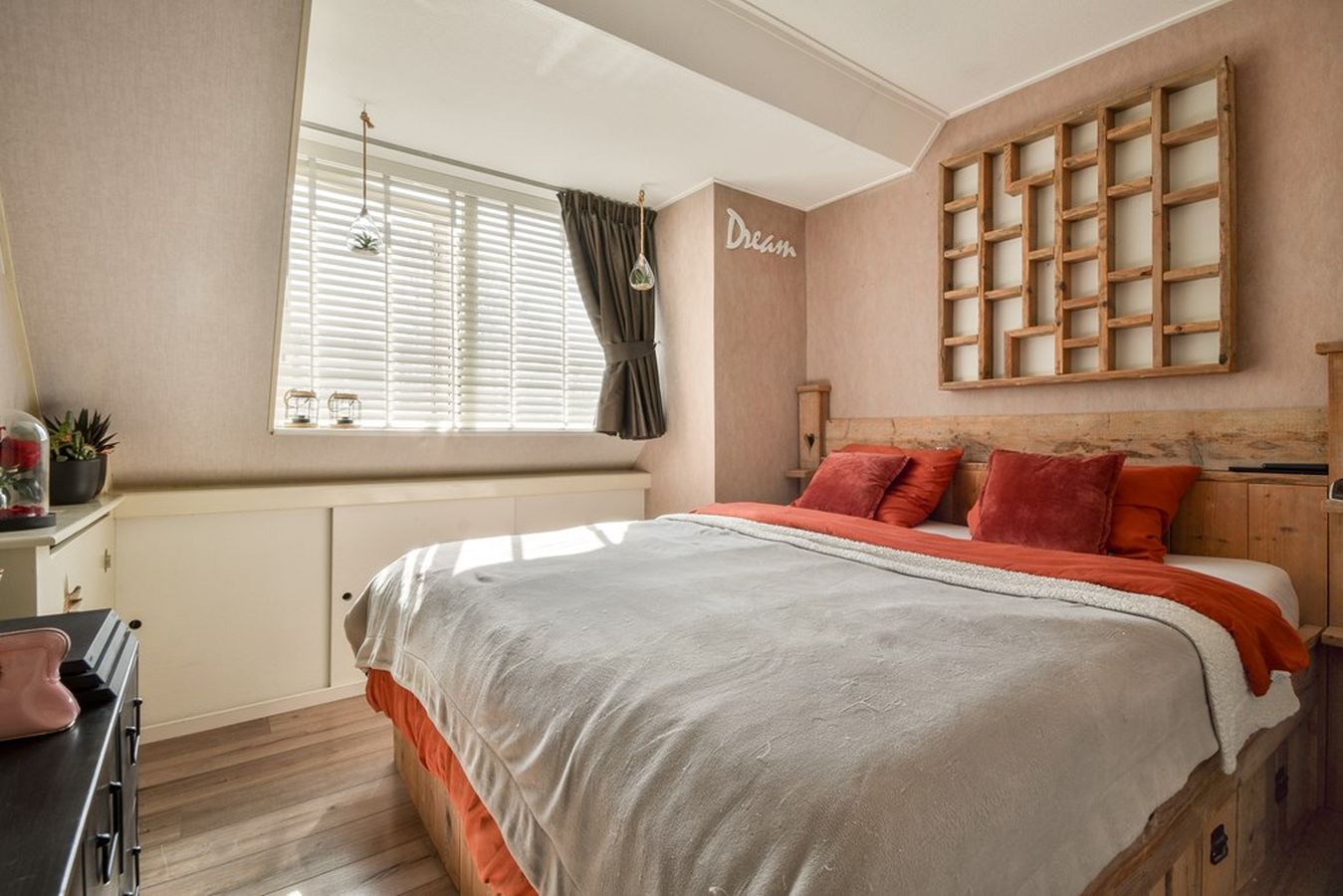 Via een vaste trap bereik je de tweede verdieping. Hier bevindt zich de vierde slaapkamer, voorzien van een dakraam, zonwering, nette vloer- en wandafwerking en bergruimte achter de knieschotten. De achtertuin is keurig verzorgd en biedt volop privacy. Je vindt hier een houten berging en de veranda. De voortuin draagt bij aan de verzorgde uitstraling van de woning en biedt voldoende ruimte voor groen of een zitje.