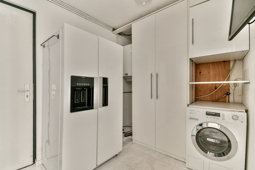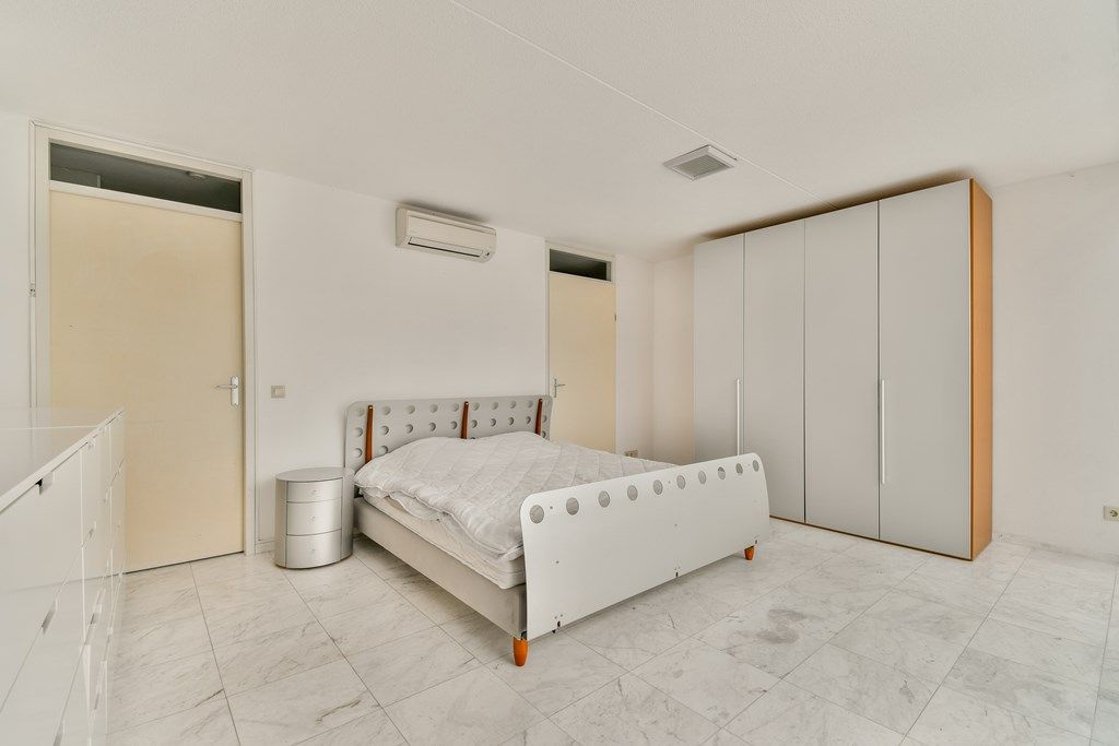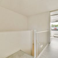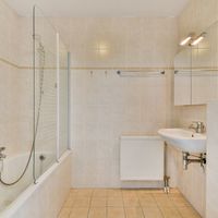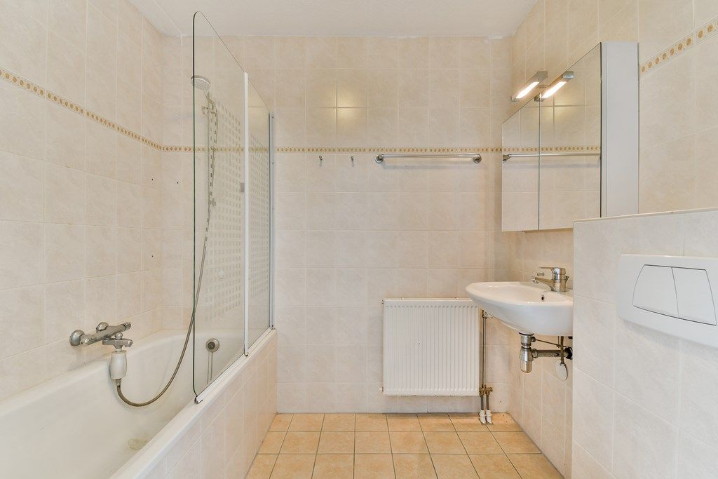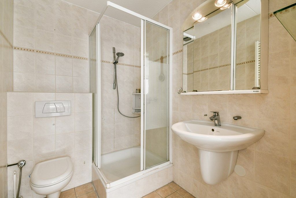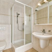 De lange gang geeft toegang tot de hoofdslaapkamer aan de achterzijde van de woning, met aansluitend de badkamer met douchecabine, wastafel en 2e toilet. Verder is er een inpandige berging met wasmachineaansluiting, boiler en uitloop naar de gemeenschappelijke corridor die weer toegang geeft tot de openbare weg.